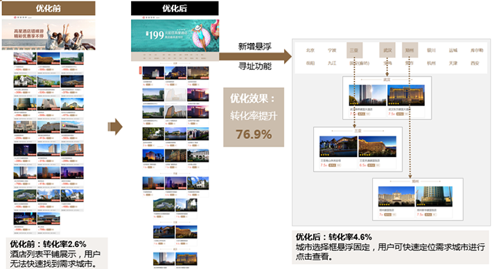 着陆页 用户体验不佳,无法引导用户快速到达酒店页面进行快速预订,从而引发用户流失